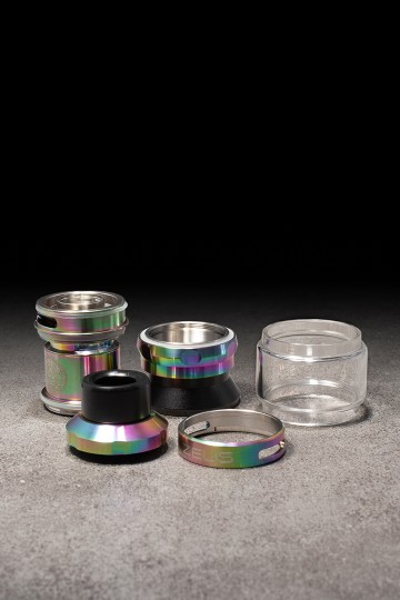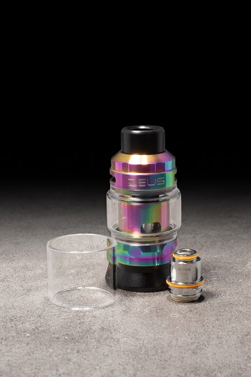 Le clearomiseur Zeus Sub Ohm avec son design élégant et ses finitions parfaites dispose d'un diamètre de 26 mm et un réservoir Bulb de 5ml ou de 3.5ml avec son tube pyrex classique.