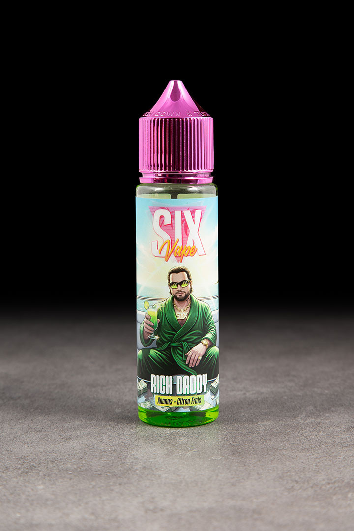 Le e-liquide Rich Daddy de Six Vape propose des saveurs bien fruitées d’ananas qui ouvrent la vape, suivies par la pointe acidulée du citron.L’ensemble est relevé par une fraîcheur en fin de bouffée.
